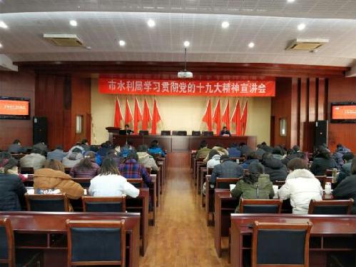 为深入学习党的十九大精神,贯彻落实习近平新时代中国特色社会主义思想,12月19日下午,市水利局举办学习贯彻党的十九大精神专题宣讲会,特邀市委讲师团副团长、市委十九大宣讲团成员顾戛良教授到我局进行专题宣讲,市水利局全体机关干部、系统各直属事业单位干部职工及基层水利站站长参加了宣讲会。