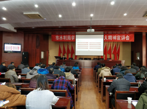 为深入学习党的十九大精神,贯彻落实习近平新时代中国特色社会主义思想,12月19日下午,市水利局举办学习贯彻党的十九大精神专题宣讲会,特邀市委讲师团副团长、市委十九大宣讲团成员顾戛良教授到我局进行专题宣讲,市水利局全体机关干部、系统各直属事业单位干部职工及基层水利站站长参加了宣讲会。